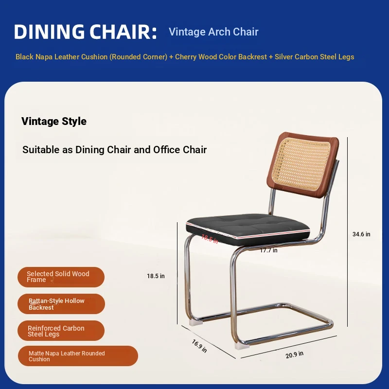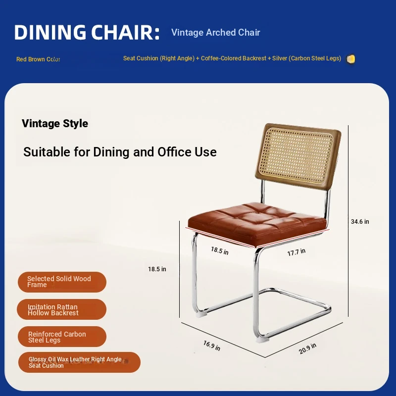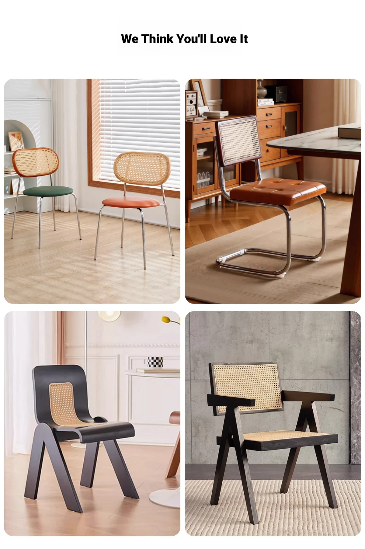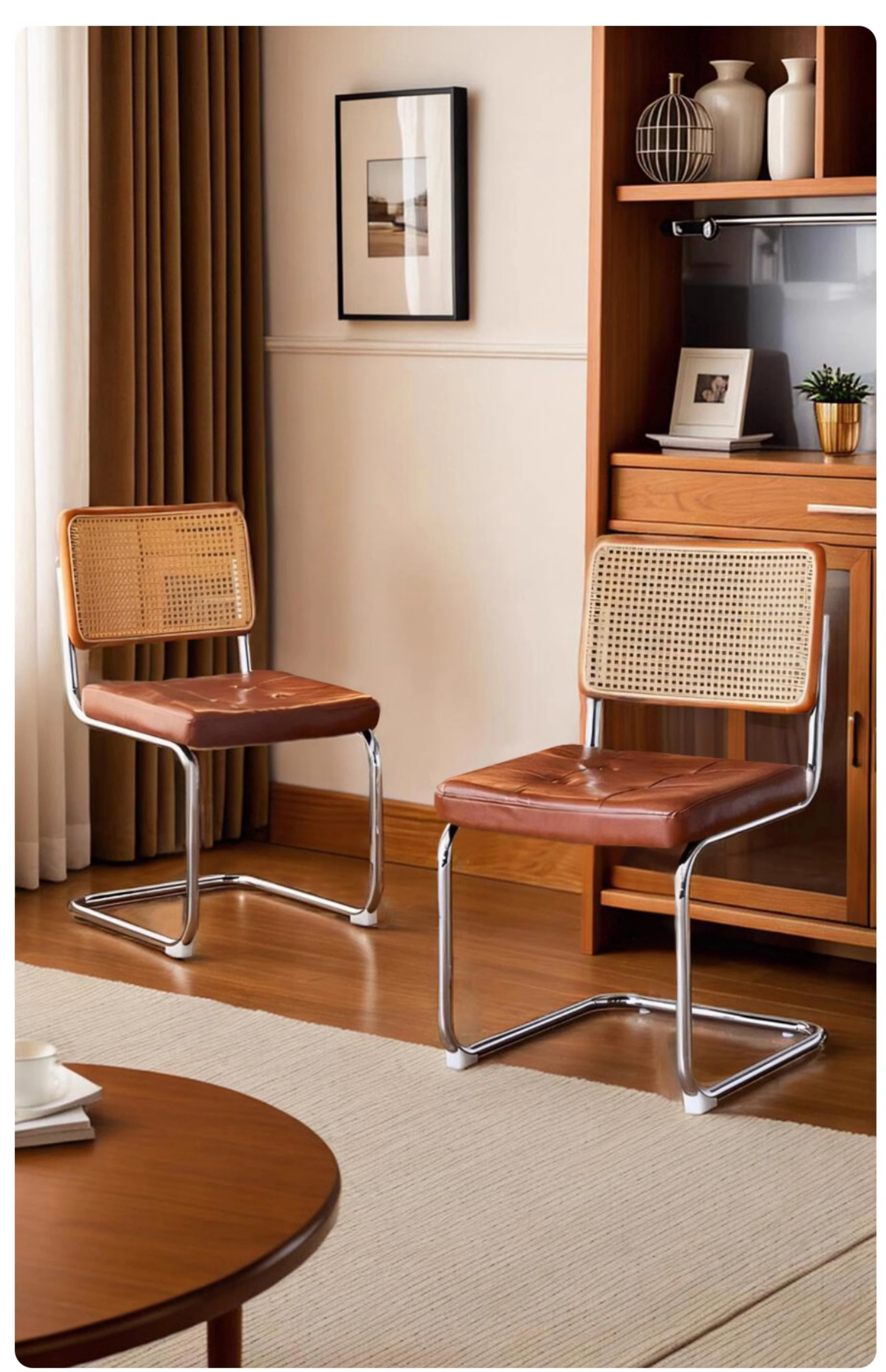 Aisenlante Retro Rattan Dining Chair - Scandinavian Designer Style for Home Dining, Café, and Office Use - Perfect Blend of Vintage Charm and Modern Comfort
