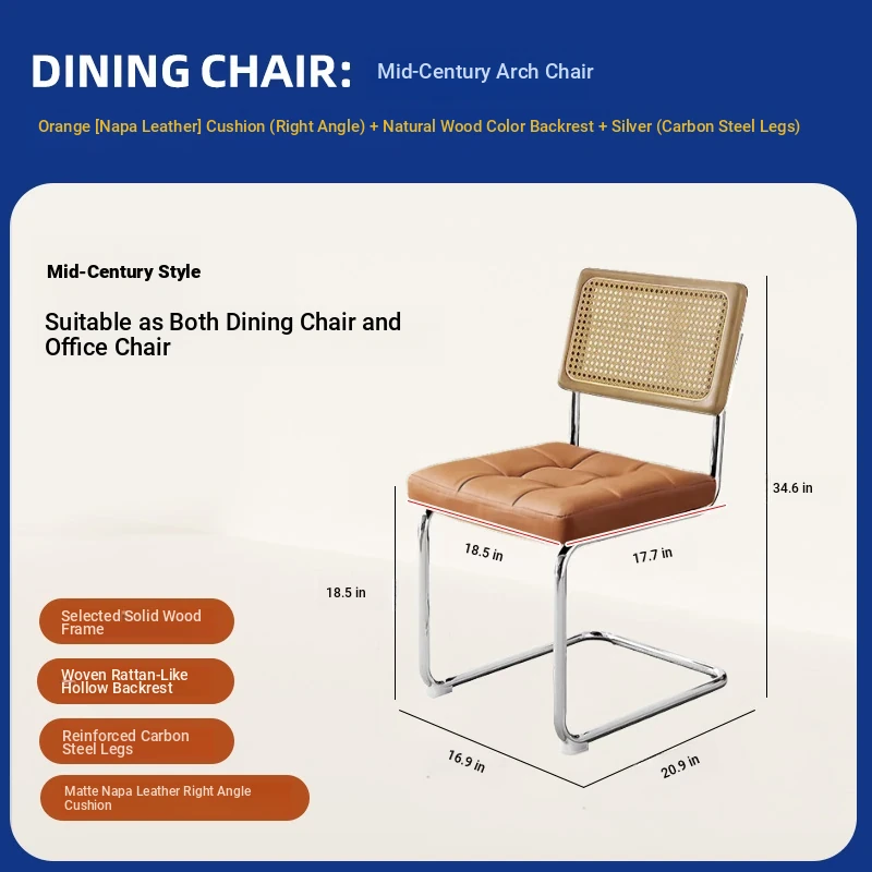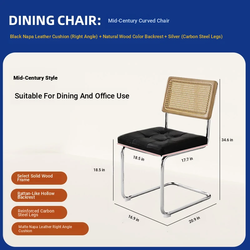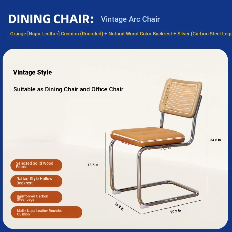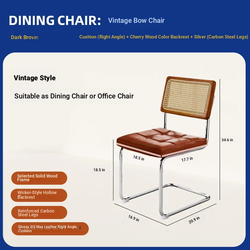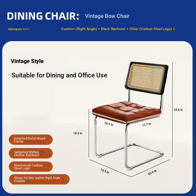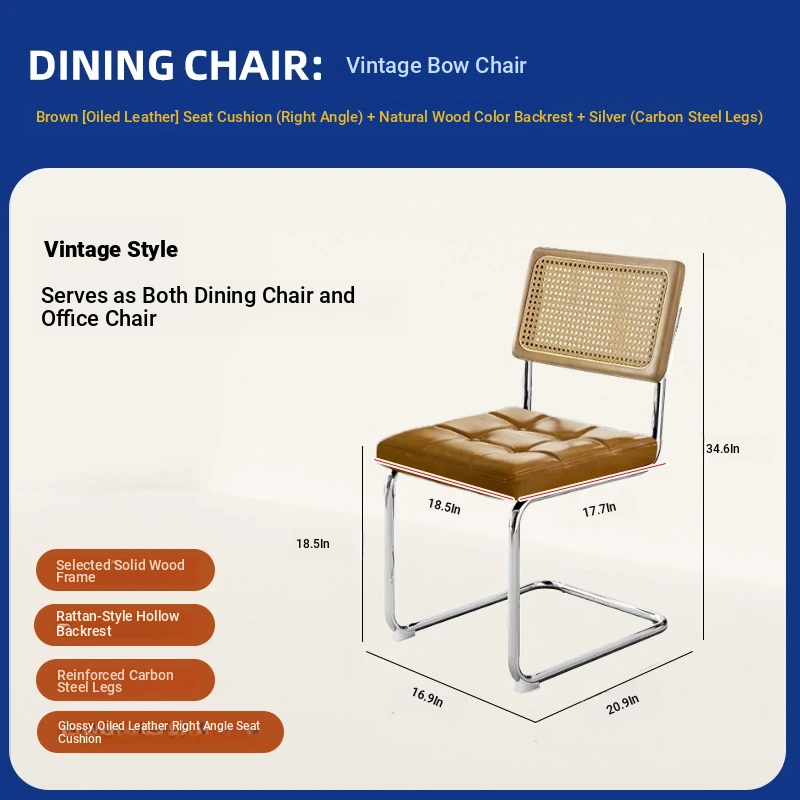 Aisenlante Retro Rattan Dining Chair - Scandinavian Designer Style for Home Dining, Café, and Office Use - Perfect Blend of Vintage Charm and Modern Comfort