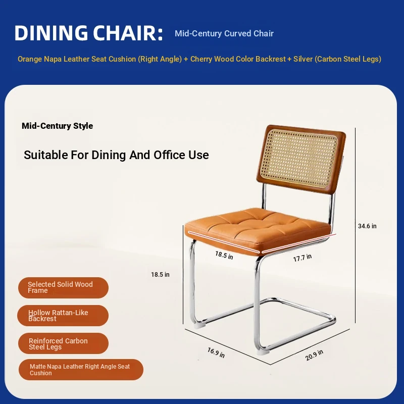 Orange [Nappa skin] cushion (right angle) + cherry wood backrest + Silver (carbon steel feet)