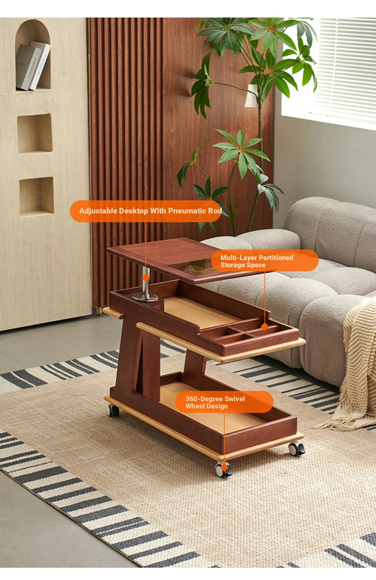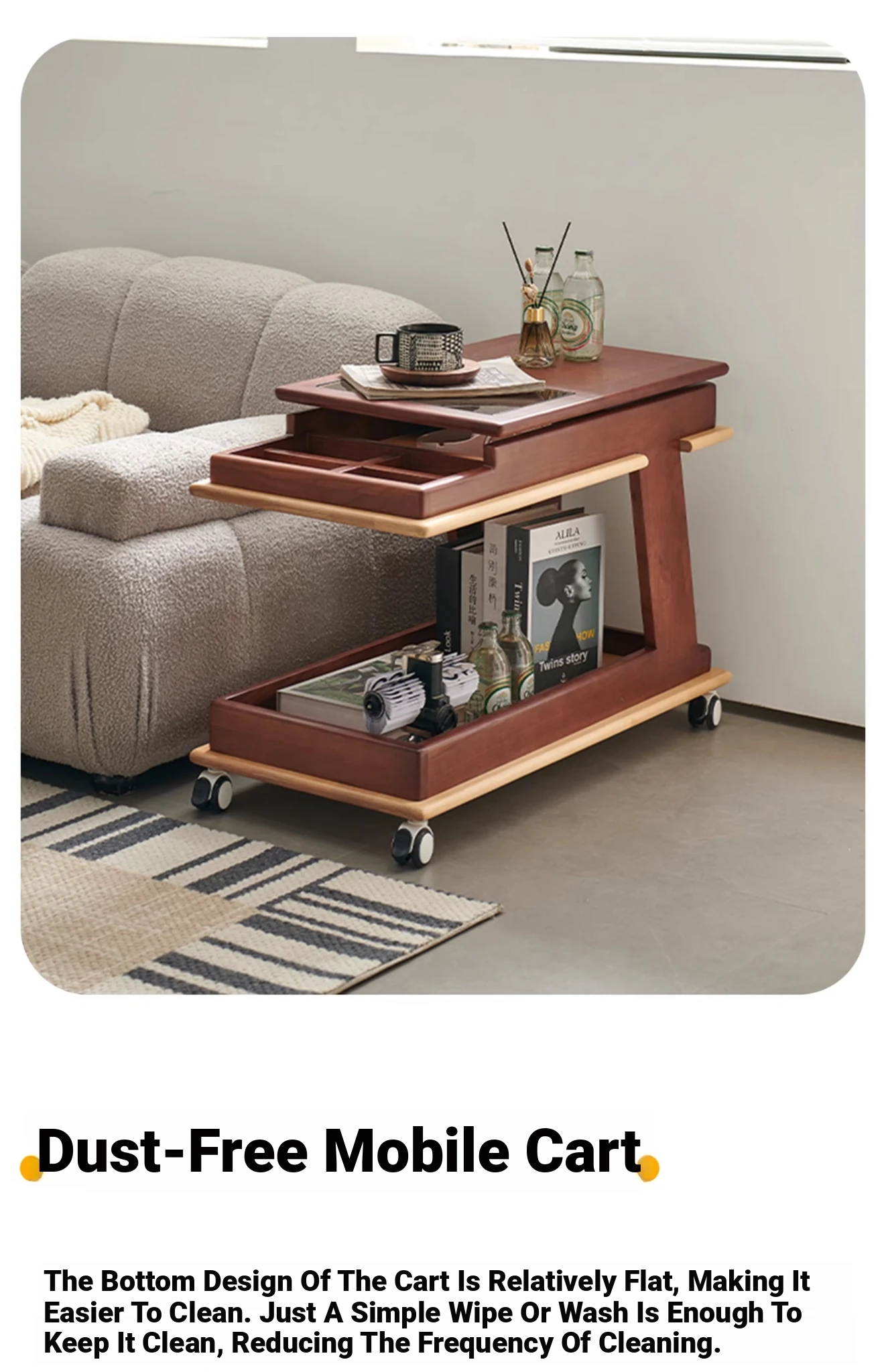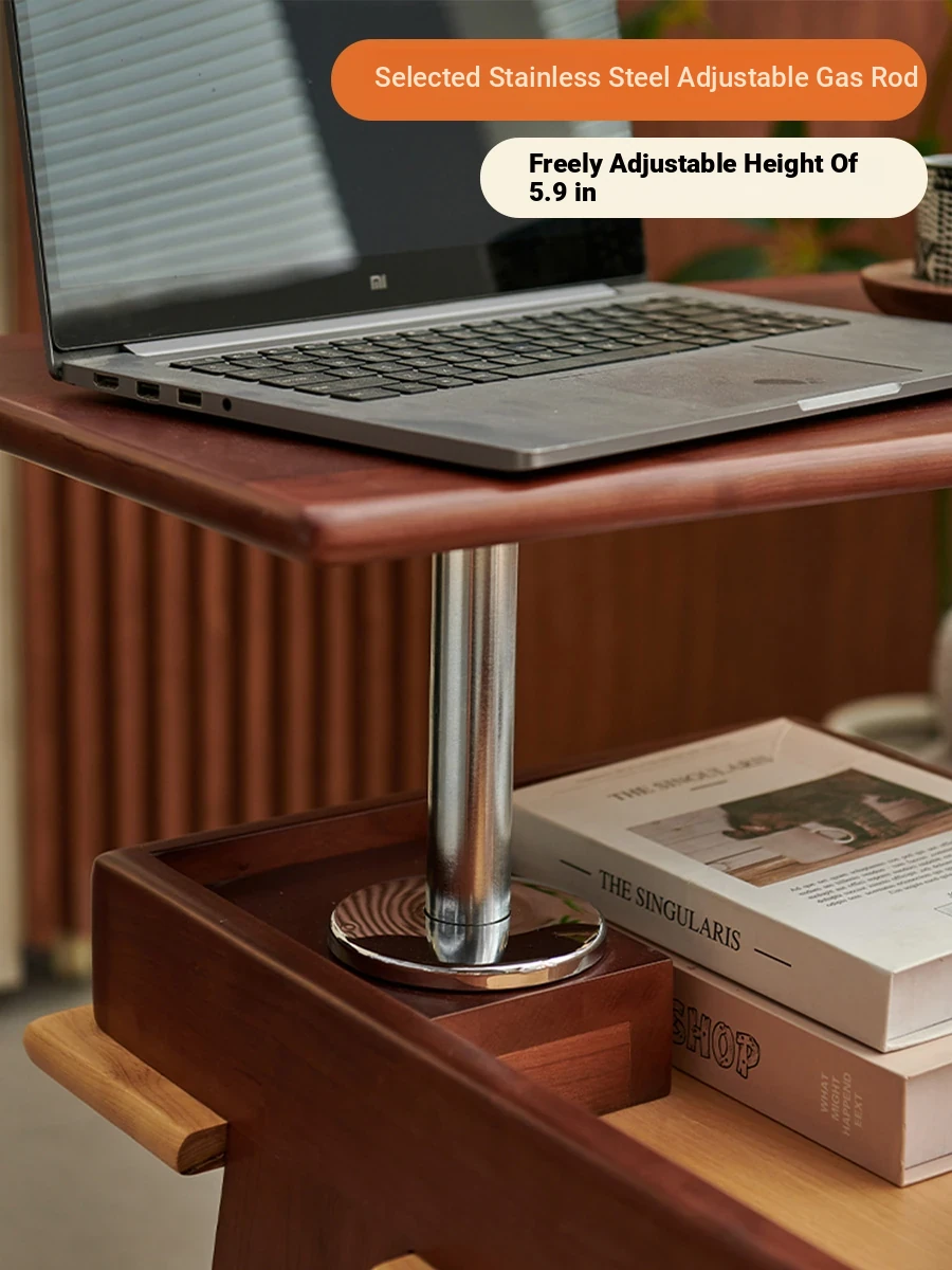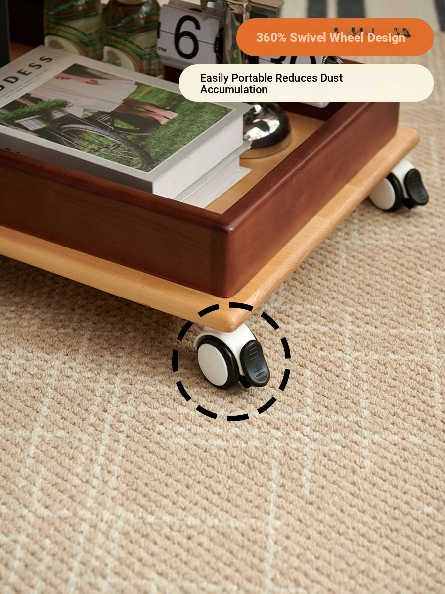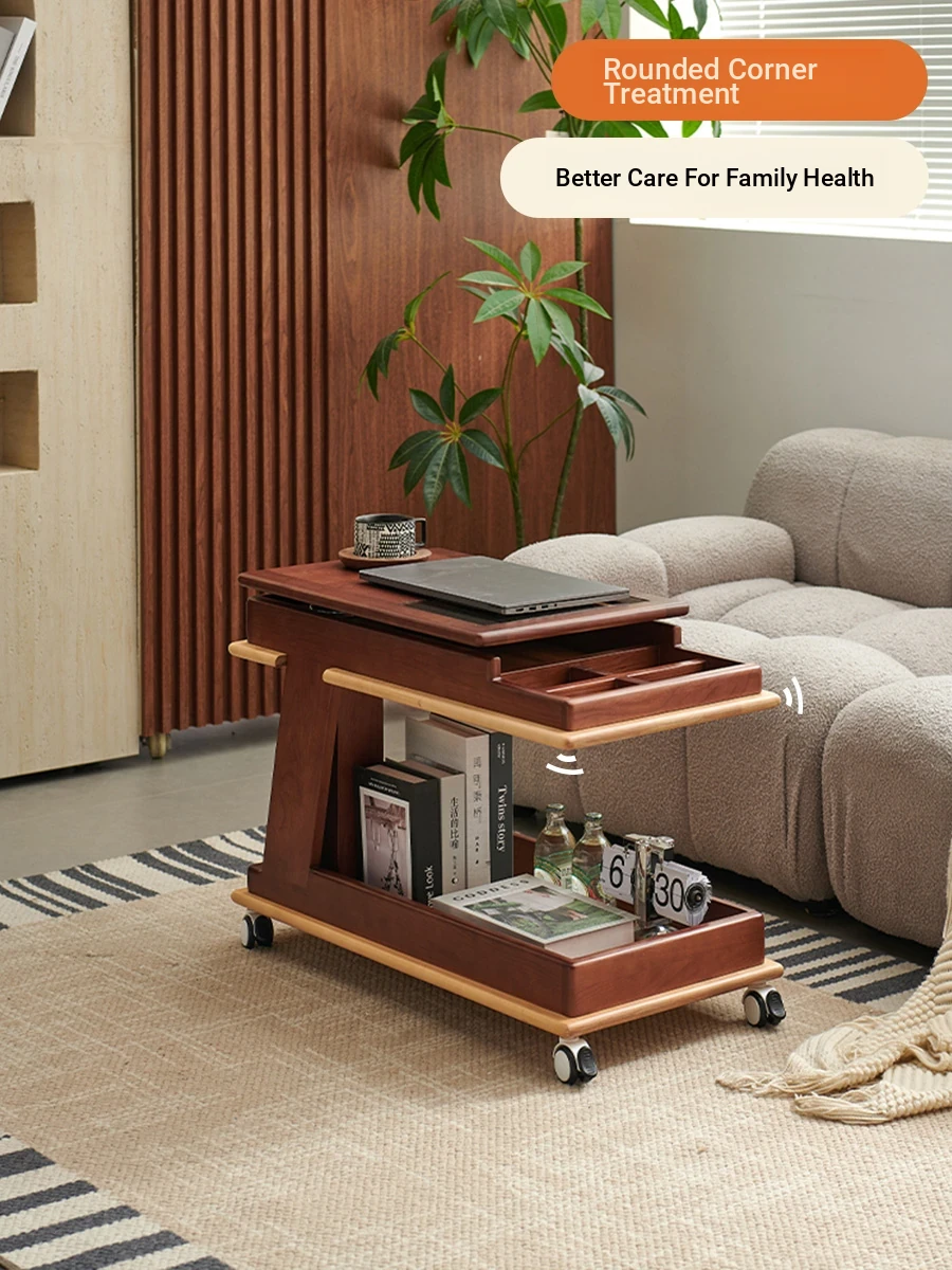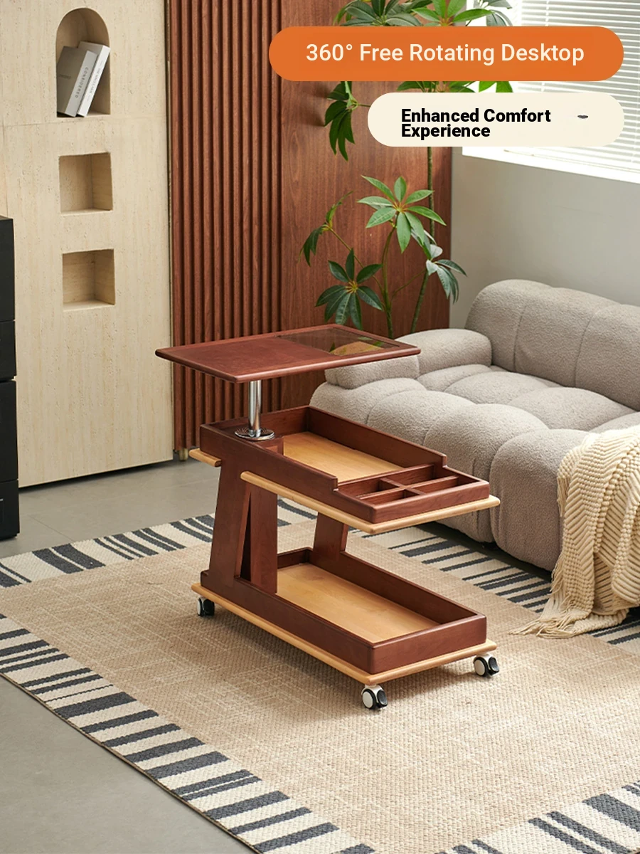 Aisenlante Solid Wood Rolling End Table - Vintage Home Living Room Sofa Storage Rack with Lift Mechanism - Versatile Nightstand on Wheels for Easy Mobility and Style