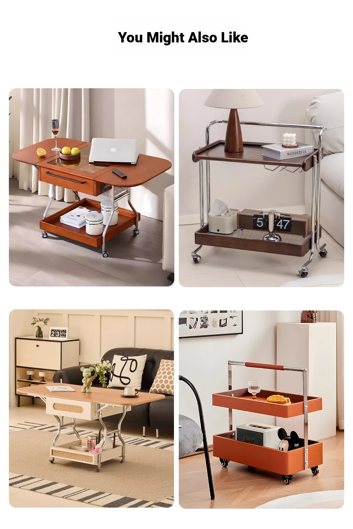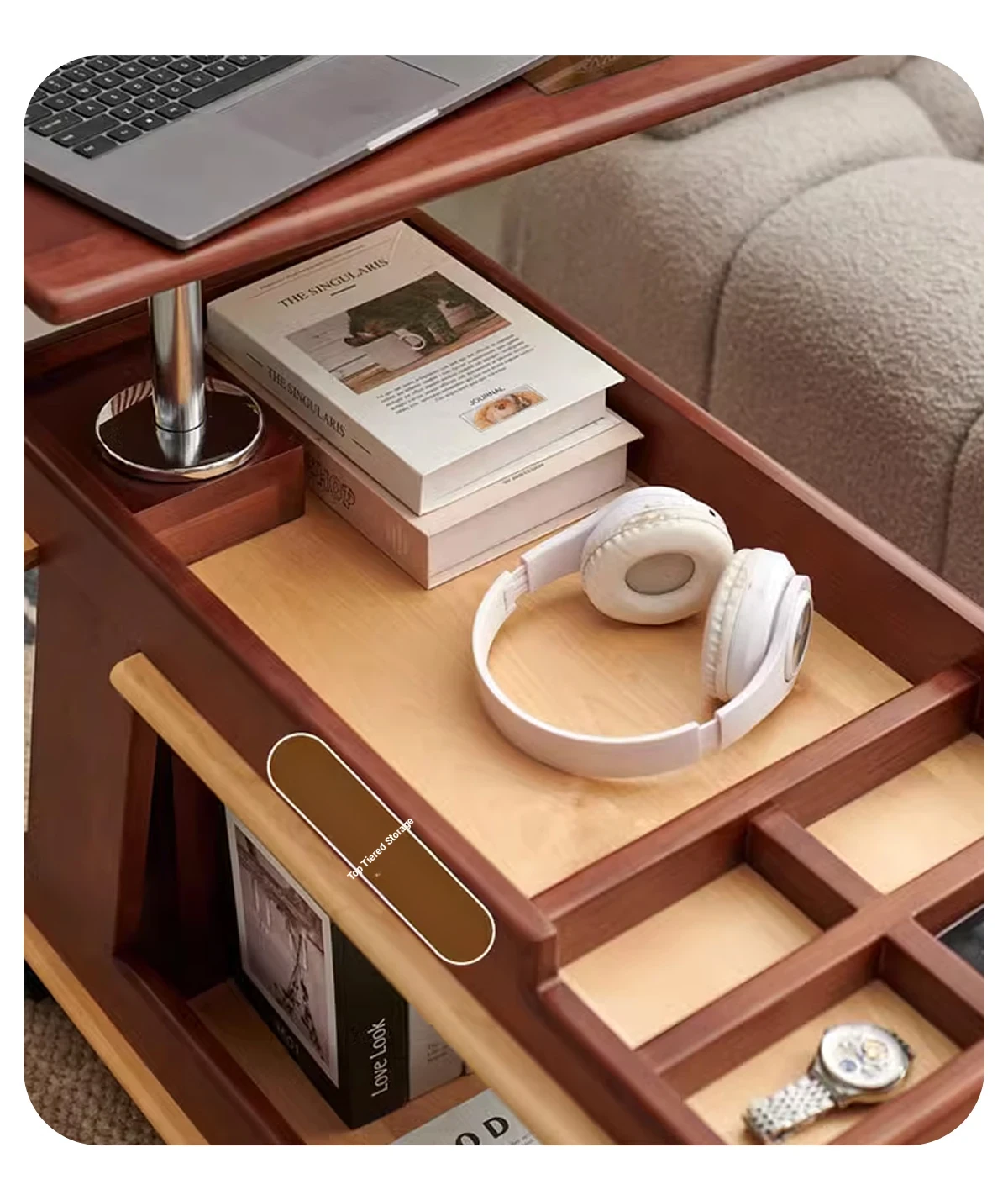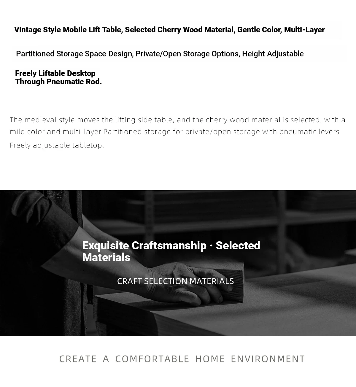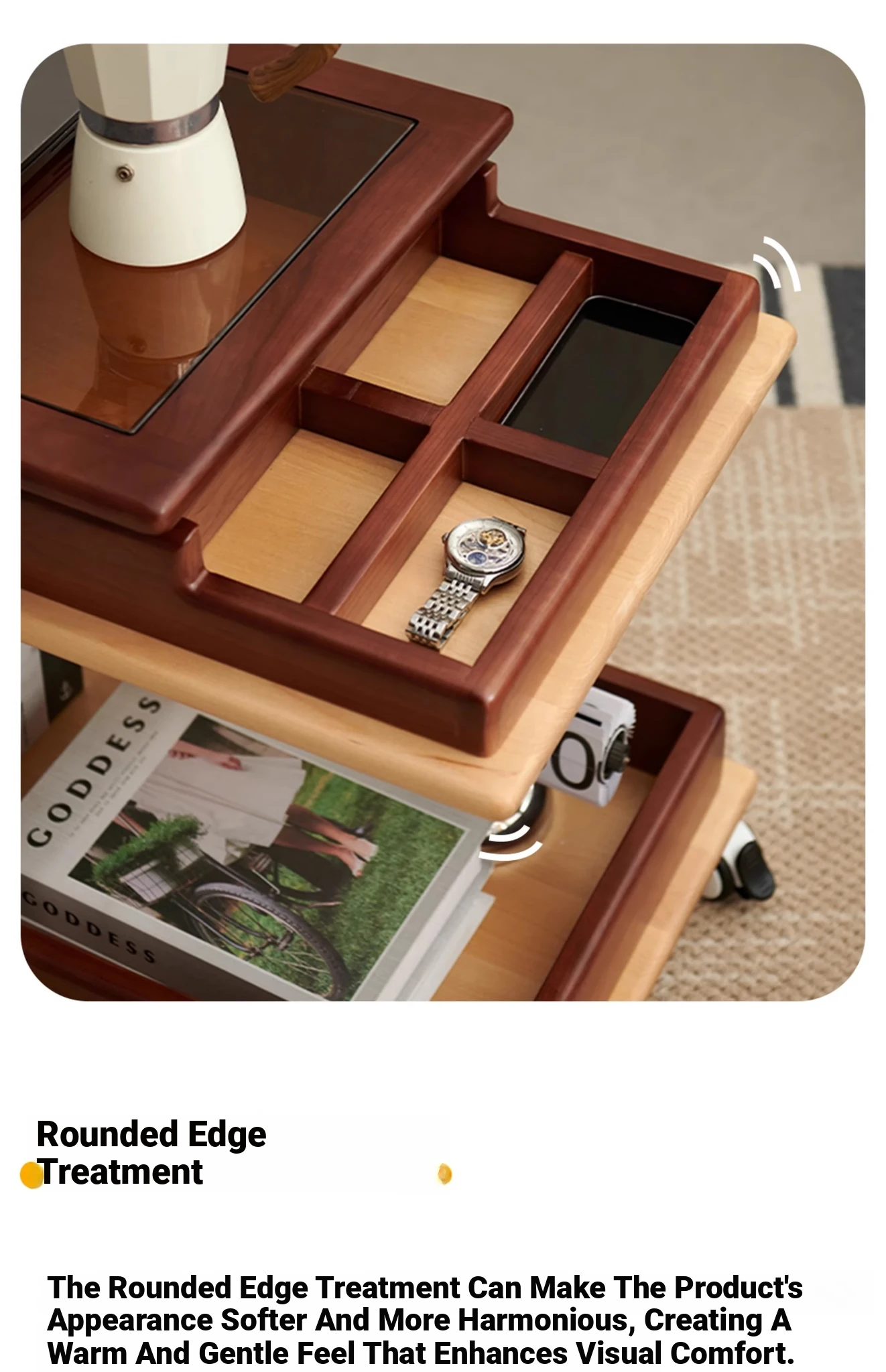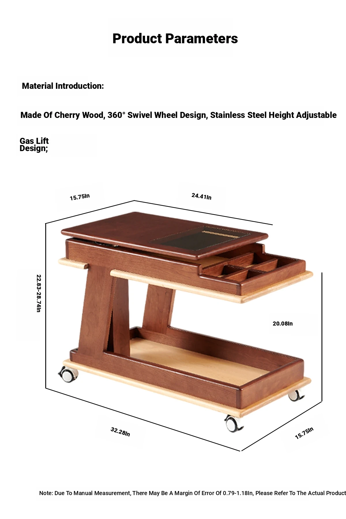 Aisenlante Solid Wood Rolling End Table - Vintage Home Living Room Sofa Storage Rack with Lift Mechanism - Versatile Nightstand on Wheels for Easy Mobility and Style