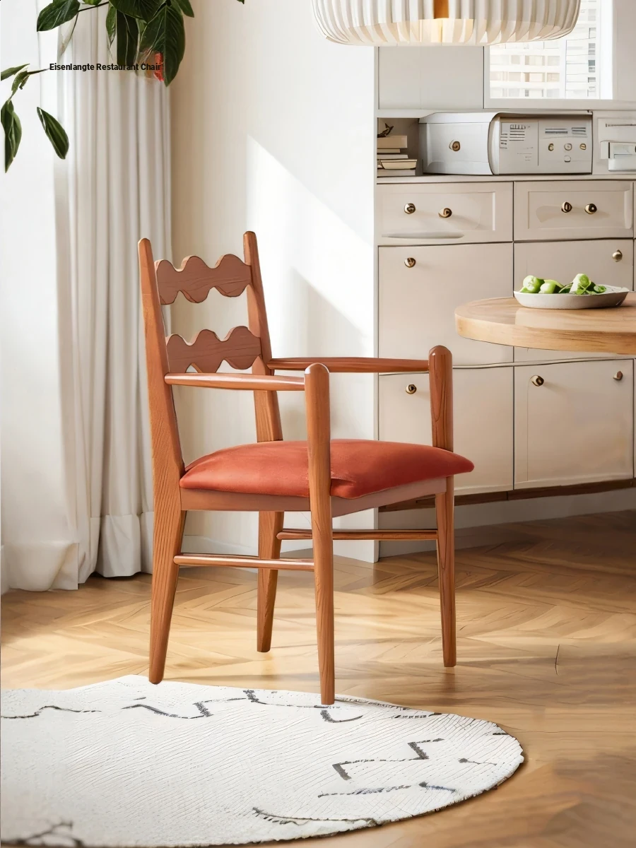 Eisenlongte Nordic Solid Wood Dining Chair - Italian Minimalist Design with Makeup Backrest, French Vintage Dining Table Chair for Home Use