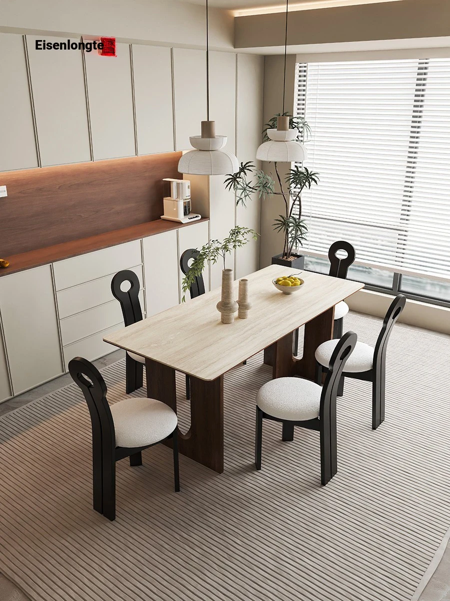Aisenlongte Retro Solid Wood Dining Table - Elegant Rectangular Stone-Look Top for Home, Perfect for High-End Restaurants and Stylish Dining Experiences