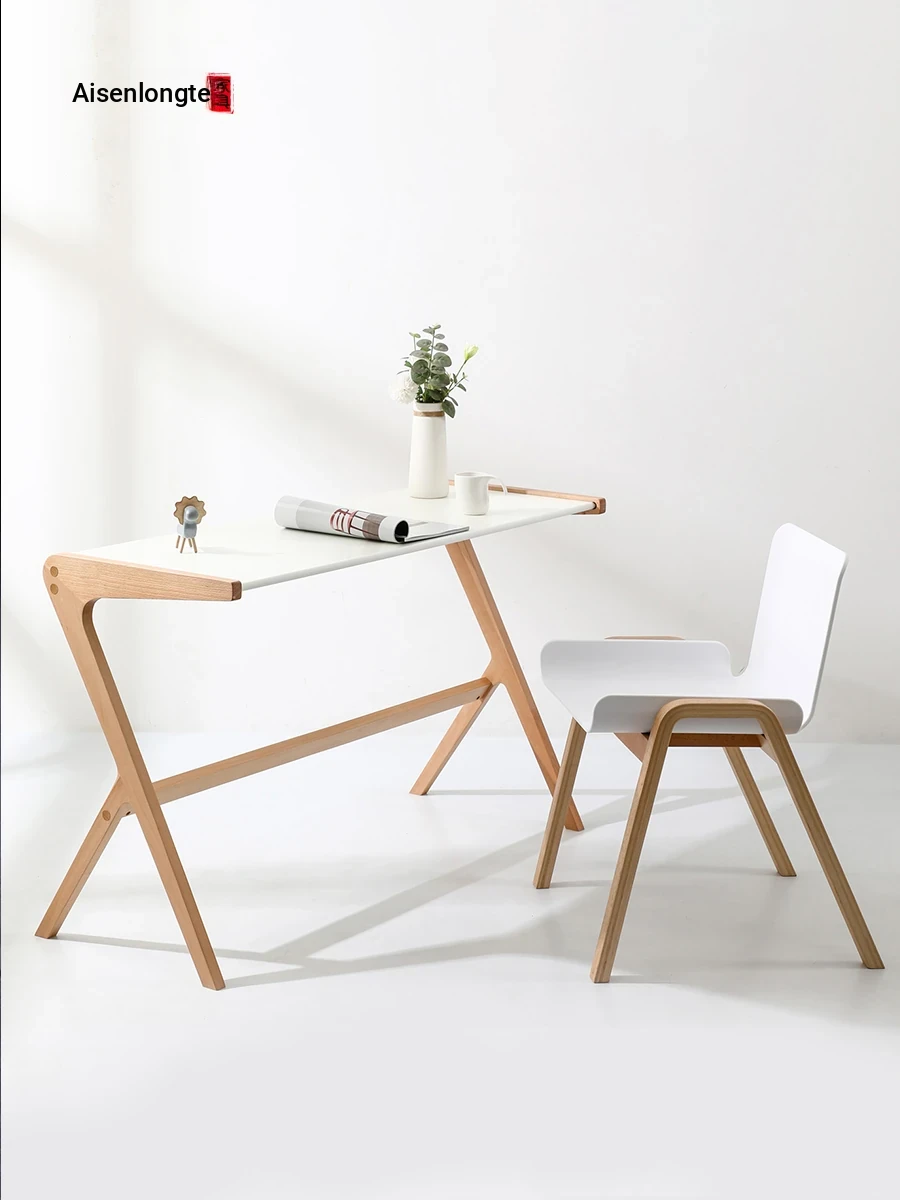 Nordic Creative Solid Wood Desk - Stylish Compact Writing and Makeup Table for Small Spaces, Modern Rectangular Computer Desk for Home Office