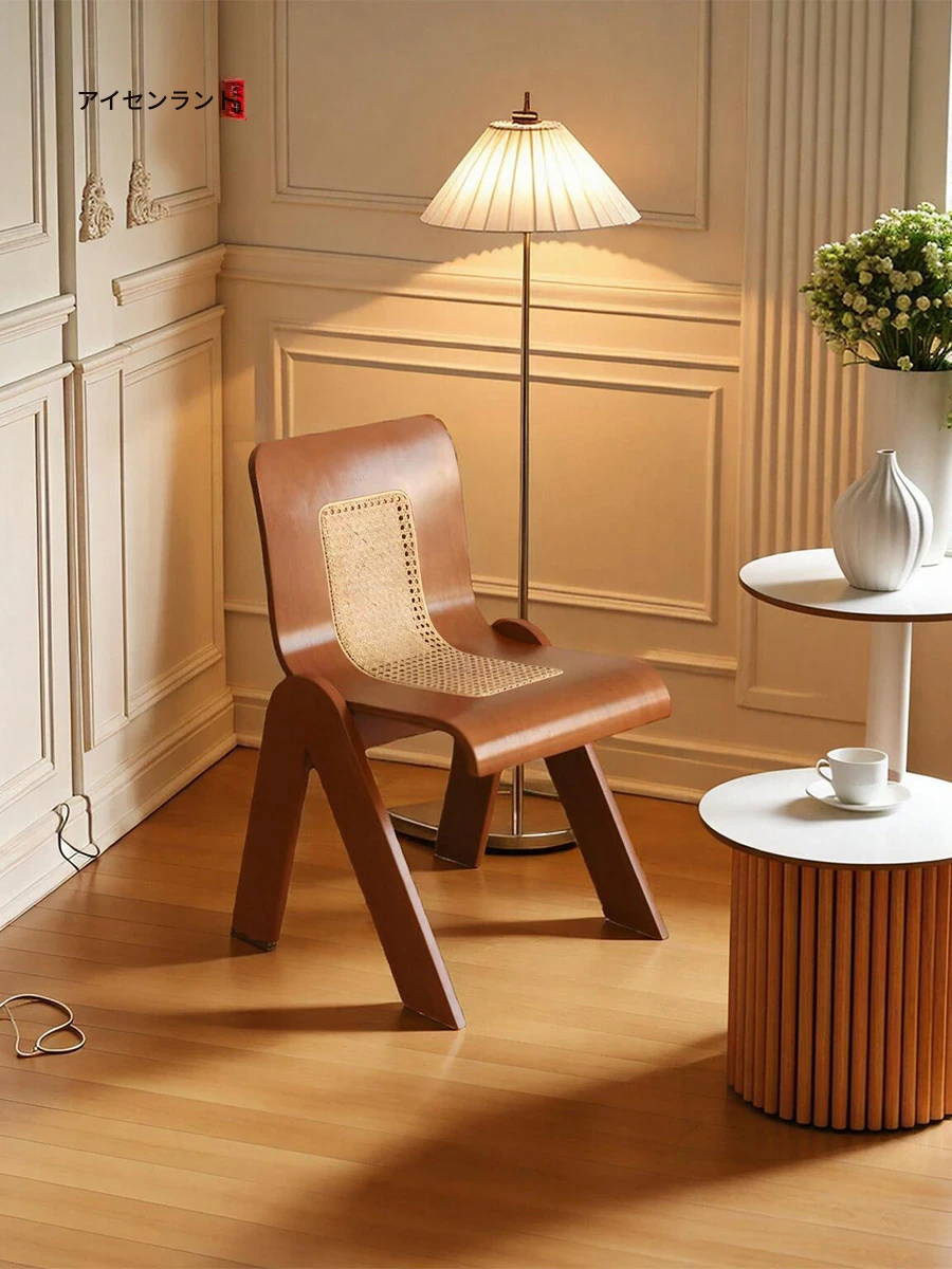 エイサンラントのシンプルでモダンな無垢材ダイニングチェア。家庭用・スタッキング可能、侘寂の美を感じるデザイン。カフェやティーショップにぴったり!快適な座り心地でおしゃれな空間を演出します。