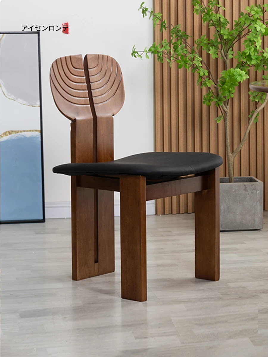 アイセンラントの中古無垢材ダイニングチェア、デザイナーによるレトロ彫刻の背もたれ。新中式の侘び寂び風スタイル、ナチュラルウッドのダイニングテーブルとチェアセットで、食卓に優雅さをプラス!